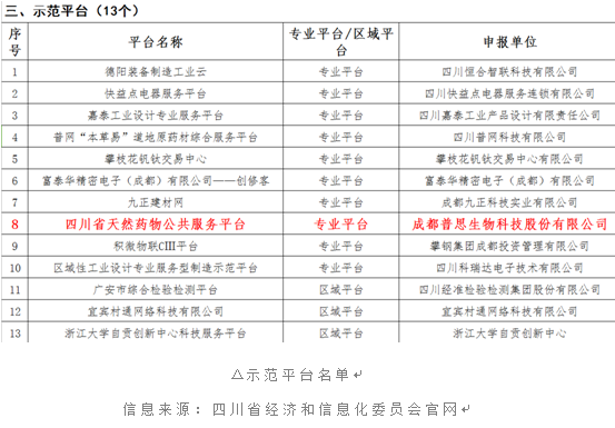 日前,成都普思生物科技股份有限公司作為川內(nèi)新三板藥物研發(fā)性企業(yè),被四川省經(jīng)信委評定為“四川省第一批服務(wù)型制造示范企業(yè)(項(xiàng)目、平臺(tái))”,真可謂是雙喜臨門:一是以總集成總承包服務(wù)入圍服務(wù)型制造示范企業(yè);二是以四川省天然藥物公開服務(wù)平臺(tái)入圍服務(wù)型制造示范平臺(tái)。