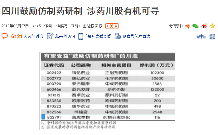 四川省政府近日出臺的《關于支持重大新藥創(chuàng)制國家科技重大專項成果轉移轉化工作的通知》(以下簡稱《通知》)提出,鼓勵仿制臨床必需、療效確切、供應短缺的藥品,優(yōu)先仿制重大傳染病防治和罕見病治療所需藥品、處置突發(fā)公共衛(wèi)生事件所需藥品、兒童使用藥品以及專利到期前一年尚沒有提出注冊申請的藥品。鼓勵將仿制藥品目錄內臨床急需的化學藥品和生物藥品關鍵共性技術研究及產品研發(fā)列入相關科技規(guī)劃和研發(fā)計劃,支持產學研單位申報國家相關科技計劃。對仿制藥企業(yè)符合西部大開發(fā)或高新技術企業(yè)優(yōu)惠政策的,減按15%的稅率征收企業(yè)所得稅。做好與藥品采購、醫(yī)保支付等改革政策的銜接,促進仿制藥企業(yè)不斷增強科技創(chuàng)新能力,推動轉型升級。《金融投資報》記者梳理后發(fā)現,目前川內涉藥企業(yè)中包括了部分A股上市公司和新三板掛牌公司,隨著上述政策落地實施,涉藥川股有機可尋。