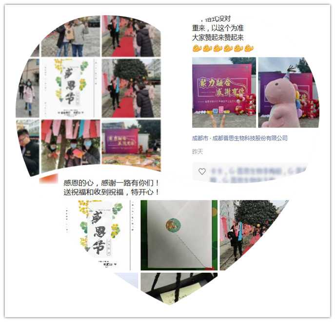 按要求發(fā)送主題“感恩的心,感謝有你”的朋友圈進(jìn)行集贊,排名前10將獲獎同事將獲得精美禮品一份。朋友圈集贊活動不僅是為了獲得精美禮品,更是感恩同事,朋友,家人的默默付出。