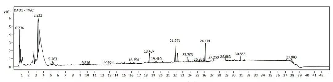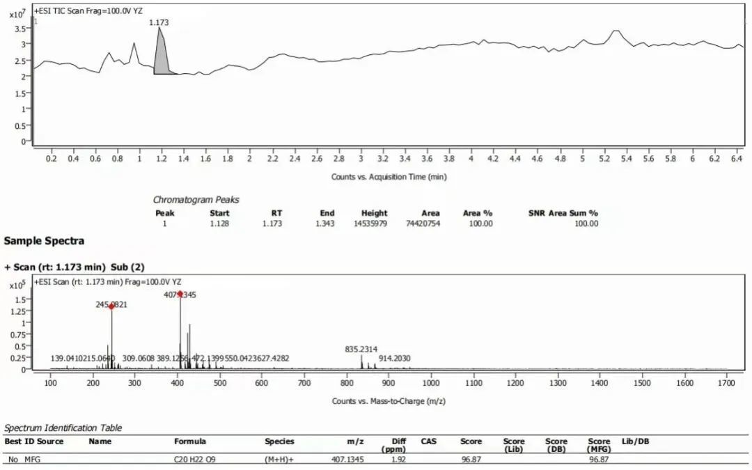 中藥材、浸膏/粉、復(fù)方制劑、發(fā)酵液等復(fù)雜樣品的化學(xué)成分分析。依托UPLC的高效分離能力和Q-TOF的快速鑒定能力,對(duì)各個(gè)特征峰進(jìn)行分析。通過(guò)多維信息分析給予推測(cè)分子式,再通過(guò)譜庫(kù)鑒定給予推測(cè)結(jié)構(gòu)式。