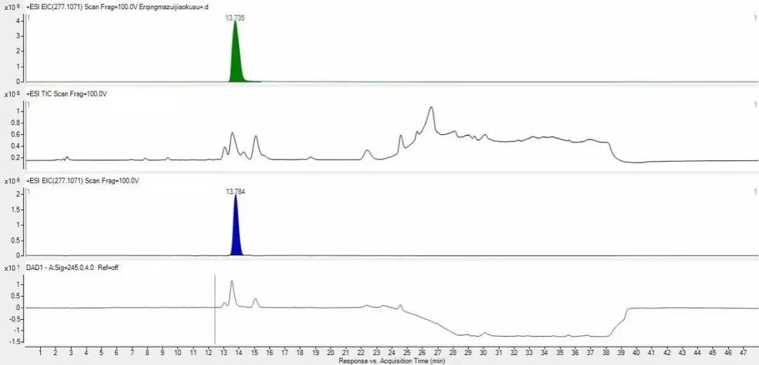 適用于無(wú)紫外吸收、色譜分離難度大或微量成分的定量。質(zhì)譜定量具有較高的靈敏度,是傳統(tǒng)紫外檢測(cè)器的1000倍。