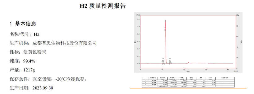 某護(hù)膚品企業(yè)需從某珍稀植物中提取含量?jī)H0.01%的抗氧化黃酮成分。普思生物利用半制備系統(tǒng)開發(fā)專屬方法,實(shí)現(xiàn)微量成分的高效富集,最終獲得100mg超高純度(99.4%)單體,助力客戶產(chǎn)品功效升級(jí)。原料及單體HPLC圖譜: