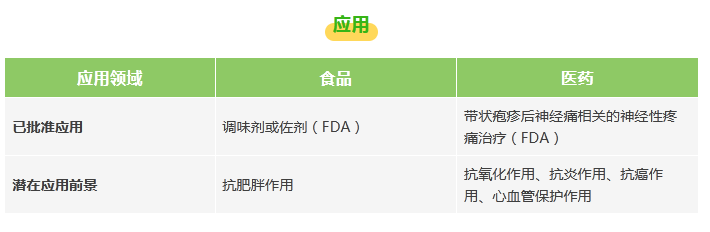1.鎮(zhèn)痛作用:辣椒素通常被用于骨關(guān)節(jié)炎、類風(fēng)濕關(guān)節(jié)炎、糖尿病神經(jīng)病變、非糖尿病周圍神經(jīng)病變和帶狀皰疹后神經(jīng)痛。研究表明,辣椒素可以選擇性結(jié)合具有高通透性的Ca2+陽離子通道TRPV1,促進P物質(zhì)消耗,導(dǎo)致受體功能降低或損傷,從而達到鎮(zhèn)痛的效果。