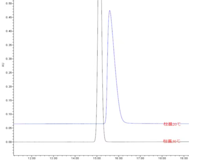 原因:柱溫設置過低,會使流動相粘度增加,對照品在柱內的擴散和傳遞速度變慢,可能會導致峰前沿。