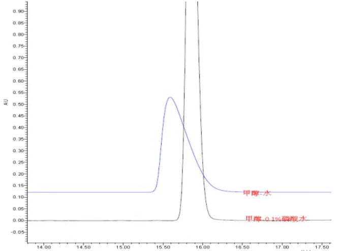 原因:當pH值不適當時,對照品與固定相的相互作用不均勻,導致部分分子提前或延遲流出,形成前沿峰或拖尾峰。