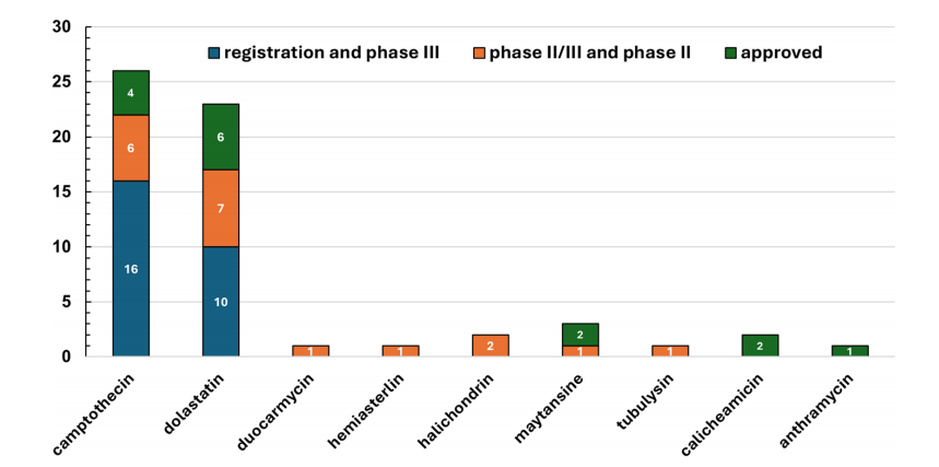 · 技術(shù)融合創(chuàng)新:半合成和全合成技術(shù)解決天然產(chǎn)物供應短缺問題(如苔蘚抑素1 通過全合成實現(xiàn)臨床試驗供應);ADC 技術(shù)與天然產(chǎn)物結(jié)合打造精準治療新范式,拓展其在腫瘤治療中的應用。